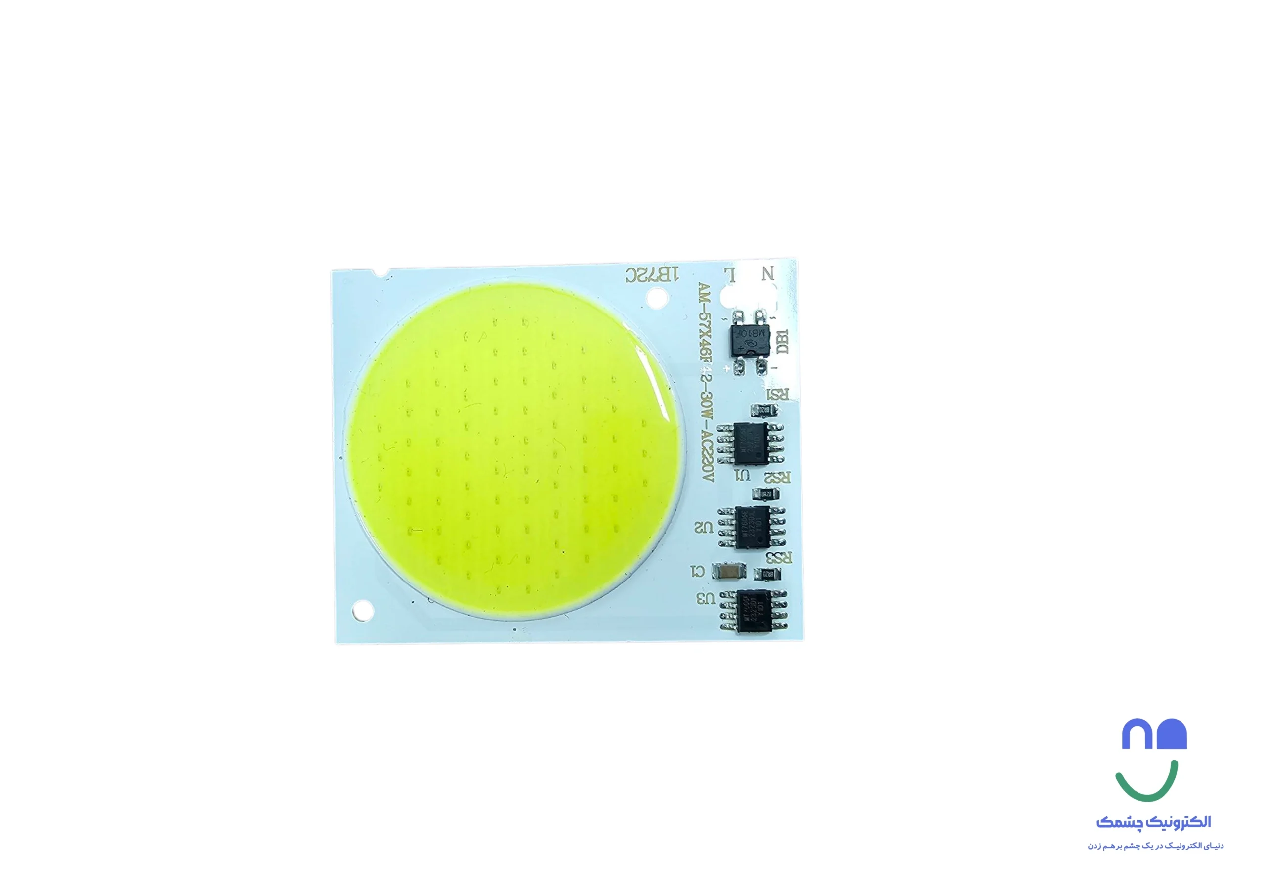 این چیپ COB با طراحی گرد و توان 30 وات، نور سفید یکنواخت و با کیفیتی تولید میکند و مستقیماً با برق شهری 220 ولت کار میکند، بدون نیاز به درایور مجزا.